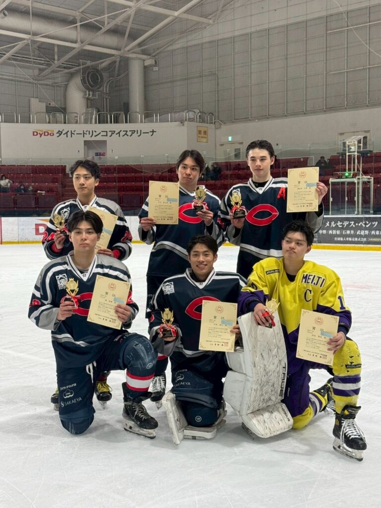 【アイスホッケー】98回インカレ 競技結果について 2025年12月28日 最終更新日時 : 2026年1月8日 アイスホッケー部門◾️セカンドディビジョン優勝 大阪工業大学準優勝 北海学園大学3位 東北福祉大学◾️ファーストディビジョン優勝 中央大学準優勝 明治大学3位 大東文化大学◾️個人賞個人賞_結果ダウンロード